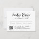 Cette carte de réponse chic et chic, noir et blanc mariage est la carte de réponse parfaite à envoyer si vous avez à la fois des invités plus traditionnels qui préfèrent répondre par la poste, et aussi ceux qui préfèrent répondre en ligne. Cette simple carte budgétaire fonctionnera pour tout le monde. Les clients peuvent remplir la partie supérieure et retourner la carte par la poste, ou scanner le code QR ou aller sur votre site Web indiqué en bas à la place. Décontracté script moderne crée un aspect informel et totalement moderne.