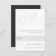 Conçu pour correspondre à nos invitations de mariage Script Watermark, cette carte RSVP basée sur la typographie élégante est parfaite pour les RSVP par courrier traditionnel. Le design comporte des lettres de script surdimensionnées en haut, en ton sur les tons pour un effet filigrane. Personnalisez avec votre date RSVP souhaitée et coutume accepter et refuser le libellé dans les lettres serif classiques alignées en bas à droite. Notre colorway de cendres fait une déclaration classique avec du noir doux et à peine là du lettrage gris sur un arrière - plan blanc immaculé.