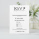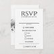 Un design de carte de réponse simple avec un espace pour 3 options de dîner pour vos invités et une ligne pour une demande de chanson ou une allergie alimentaire. Nous sommes heureux de personnaliser ceci davantage pour vous, n'hésitez pas à nous envoyer un message pour obtenir de l'aide.