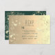 Vintage, élégant, boho floral feuille d'or mariage carte RSVP avec choix de nourriture et dos vert émeraude.