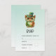 Une carte RSVP avec une merveilleuse illustration fantaisiste. Un grand hibou brun aux yeux portant un chapeau vert et une cravate d'arc.