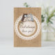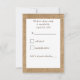 Design super adorable parfait pour les mariages rustiques décontractés et extérieurs. Cette carte de réponse présente une texture burlap look arrière - plan avec dentelle blanche doily trim. Au centre se trouve un cercle beige avec deux choux mignons assis sur une branche au-dessus du cercle. L'une est brune avec un garnissage bleu clair et l'autre est bleu clair avec un garnissage beige. À l'intérieur du cercle beige est le texte en caractères marron foncé qui dit Owl Always Love You, cependant vous pouvez changer le texte si vous voulez. L'envers de la carte de réponse a le même aspect arrière - plan de texture de burlap et une zone rectangulaire blanche solide avec du texte personnalisable et des cases à cocher. Ajoutez votre propre texte et votre date rsvp pour customiser ces adorables cartes de réponse à votre propre mariage. Matching Owl Always Love You invitations de mariage Décontracté, affranchissement et étiquettes de adresse également disponibles.