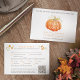 Chute amoureuse, citrouille, chute vigne feuille aquarelle peinture mariage QR code option de réponse cartes. Personnalisez cette carte de mariage de automne de réponse avec vos propres options de repas mariage et le code QR pour l'orientation du site Web aux options de réponse en ligne et les choix de repas. Doté d'un aquarelle de citrouille d'automne fantaisiste, de vignes cardiaques dans les tons orange vif et vert traditionnels avec texte brun foncé et orange sur blanc. Autres couleurs et articles mariages correspondants disponibles. © Couleur d'aquarelle à la main et conception par Sarah Trett pour www.mylittleeden.com