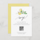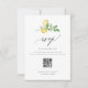 Cette carte RSVP présente une aquarelle avec des citrons, des fleurs de citron et de la verdure pour un look frais et naturel. Il comprend de l'espace pour télécharger votre propre code QR, ce qui permet aux clients de répondre facilement en ligne. Les oeuvres d'art douces et d'inspiration agrumes s'adaptent bien aux mariages d'été, aux fêtes de jardin ou aux événements de destination. Vous pouvez personnaliser le texte pour y inclure les détails de votre événement, correspondant à votre thème et votre tonalité. C’est une façon simple d’ajouter une touche de style et de commodité à vos invitations.