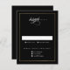 Cette carte RSVP Classic Elegant Gold Wedding est simple et polyvalente. Il présente un design chic blanc et noir avec un cadre doré simple, un script art rsvp et un texte modifiable minimal. Cliquez sur le bouton Modifier pour customiser cette conception.