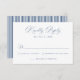 Complete your wedding stationery with this classic navy blue calligraphy wedding RSVP card, designed for formal and traditional celebrations. This refined wedding response card features elegant calligraphy-style lettering paired with structured serif typography, creating a timeless layout that feels polished and intentional. The deep navy blue color adds a tailored, old-money aesthetic, while the coordinating navy and white stripe detail brings a subtle menswear-inspired finish. Ideal for formal weddings, estate venues, and fall or winter celebrations, this RSVP card offers a sophisticated way for guests to respond. Personalize the wording to create a cohesive reply card that complements a classic wedding invitation suite.