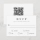 Ces cartes de réponse rsvp minimalistes présentent une typographie noire et blanche moderne simple et comprennent un espace pour les choix de repas et un code QR facultatif au verso.