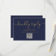 Un script signature simple et élégant répondra gentiment carte RSVP bleu marine et or avec code QR. Conçu par Thisisnotme©