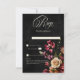 Entrez dans un royaume d'élégance exquise avec notre carte de réponse mariage florale sombre et moody sans choix de dîner, mais avec détails. Conçu pour captiver les sens, ce design se targue d'un arrière - plan noir frappant, agrémenté d'un éclat époustouflant de fleurs automnales dans des tons bordeaux, orange brûlé, crème, et de touches d'or luxueux, complétés par un feuillage vert olive luxuriant. Le texte crémeux flotte délicatement sur un doux flou de lumière, ajoutant une touche de romantisme à l'allure générale. Découvrez l'opulence de la saison et donnez le ton de votre journée spéciale avec ce design étonnant, qui laissera une impression durable à vos invités. Créé par Simply Farmhouse Press.