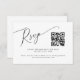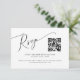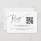 Carte RSVP de mariage élégante et minimale avec un texte de script moderne en haut avec un code QR. Ce design simple fonctionnera pour n'importe quelle saison. La carte comprend également des options de choix de repas pour les clients à choisir parmi.
