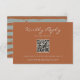 Une simple et élégante calligraphie colorée carte rsvp de mariage rétro. Comme vous le voyez, il a un vintage arrière - plan orange brûlé de cuivre moderne avec brumisé écriture manuscrite manuscrite. Avec un code QR personnalisable afin que vos invitations puissent RSVP en ligne. Et le vert clair et l'automne automne brûlé orangé peint à la main des rayures sur le dos. Vous pouvez le customiser en cliquant sur le bouton Personnaliser.