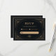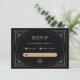 Ces cartes de réponse rsvp de mariage glamour présentent une touche moderne d'art déco classique. Un cadre géométrique et ornementé, imitation or, ornementent un élégant arrière - plan noir foncé pour un look de mariage spectaculaire et vintage.