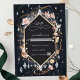 Luxueux Black Diamond Décoré Luxury RSVP Card, roses, fleurs, floral personnalisable, feuillage, et branches dans différentes nuances de vert avec imprimé.