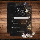 Dévoilez la mystique de votre histoire d'amour avec notre carte de réponse gothique mariage avec des options de dîner. Ce design somptueux et enchanteur présente un design noir et blanc qui évoque l'essence d'une romance intemporelle. Les délicates orchidées blanches et dorées occupent le devant de la scène sur un mystérieux ciel étoilé noir. L'élégance sombre est accentuée par le texte blanc. Ce design est une fusion artistique de beauté et de drame, promettant de donner un ton envoûtant à votre journée spéciale. Choisissez ce design pour créer un mariage aussi unique et inoubliable que votre amour. Créé par Simply Farmhouse Press, il fait partie de la Suite Mariage Dark Gothic Black & White Orchid Spells.