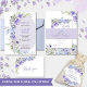 Carte de réponse florale élégante pour quinceanera ou mariage, par exemple. Ambiance florale aquarelle avec des fleurs délicates et aérées dans les tons violets de lavande lilas bleu sur un cadre moderne ovale violet clair. Le modèle RSVP est mis en place pour que vous ajoutiez votre date limite d'acceptation ou de refus des invités et vous indiquiez également combien de personnes seront présentes. Veuillez consulter ma collection de fleurs pourpres Peri pour coordonner la papeterie et le décor de jour de l'événement ou envoyez-moi un message pour créer les modèles dont vous avez besoin.