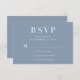 Carte de boîtier RSVP classique et bleu poussiéreux pour mariage avec "RSVP" dans une élégante typographie blanche.