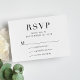 Carte de boîtier RSVP traditionnelle classique en noir et blanc avec "RSVP" dans une élégante typographie serif.