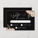 Ces époustouflantes cartes de réponse rsvp mariage comprennent des bouquets d'angle de fleurs vertes et aquarelles dans des couleurs neutres comme le beige, la pêche, le rose poussiéreux, et le vert doux avec des accents faux or et feuille et la calligraphie moderne tourbillonnant. Un élégant look boho floral sur un arrière - plan noir foncé.