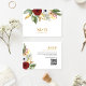 Cartons Réponse Élégant rouge or Floral Monogramme QR Code Mariage