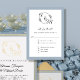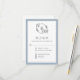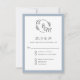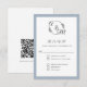 Carte de réponse RSVP officielle avec code QR (ou supprimer des champs si nécessaire). Design simple, élégant et moderne avec une bordure bleue poussiéreuse, vos initiales monogrammes et votre texte d'invitation. À l'envers, il y a le code QR. Cette conception a été créée à partir de feuilles feuillues dessinées à la main conception de couronnes pour un cadre monogramme contemporain avec une calligraphie Ampersand. Graphiquement conçu par Audrey Jeanne Roberts, artiste et designer de renommée internationale, copyright.