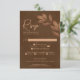 Ces belles cartes RSVP vous permettront de répondre facilement à vos faire-part de mariage. Elles sont décorées d'une aquarelle rustique peinte à la main avec des feuilles de couleur rouille ou rouge brûlé sur un arrière - plan marbré marron châtaignier. Il y a de la place pour que vos invités indiquent s'ils peuvent assister ou non, le nombre de personnes dans leur fête et leur choix de repas. Il y a également de la place pour une URL de site Web afin que vos invités puissent répondre en ligne s'ils le souhaitent.