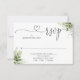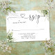 Une simple carte de réponse RSVP au cœur de la verdure élégante avec vos coordonnées dans une typographie chic. Conçue par Thisisnotme©