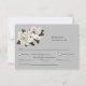 Une carte de réponse simple et élégante avec magnolias aquarelle et pédales en ivoire et vert sauge. Cliquez sur le bouton personnalisé pour modifier les dates, les options de repas et les initiales du couple de mariages au verso.