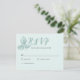 Une carte de réponse de mariage florale sarcelle rustique qui est personnalisable pour votre jour spécial. Ce design présente des illustrations botaniques originales dessinées à la main sur un beau fond bleu-vert doux. Complétez votre suite de mariage avec notre collection coordonnée de Fleurs fantaisistes rustiques.