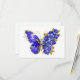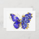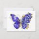 Jewelry, blue, sapphire, sparkling flower butterfly with wing decorated with blue, precious flowers with gold leaves on white background.