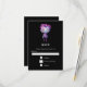 Une carte RSVP avec une jolie illustration. Monstre Frankenstein aux cheveux roses et violets et costume et cravate en dapper.
