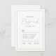La carte rsvp de mariage romantique offre un script élégant et d'élégants détails d'événement en or et noir, moderne et simple, idéal pour un mariage formel minimaliste, mariage classique traditionnel, mariage simple moderne. Voir toutes les pièces correspondantes dans la collection.