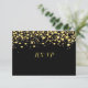 Beau look métallique, brillant, faux, confetti en feuille d'or et étoiles brillantes sur un arrière - plan noir. Personnalisez avec vos informations RSVP, choisissez n'importe quelle police et couleur de style. TOUS LES ÉLÉMENTS DE CONCEPTION SONT IMPRIMÉS, ET NON VRAIMENT FOIL OU SPARKLE.
