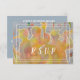 Carte RSVP Jazz Band colorée et amusante. Tellement amusant et coloré ! Trompette, saxophone, base, piano tout en aquarelles avec des notes flottant autour du groupe. Couleurs vives et amusantes qui disent juste PARTY!