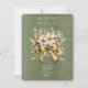 Célébrez votre mariage en envoyant ces magnifiques fleurs d'hiver de Noël, feuilles vertes et carte de réponse de conception de ruban doré.