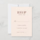 This elegant wedding RSVP card features a minimalist and sophisticated design with a soft, blush color palette that exudes warmth and charm. The clean typography adds a touch of modernity, while the simple layout ensures clarity and ease of use. Perfect for couples aiming to convey their joyous occasion in an understated yet refined manner, this card invites guests to respond with grace. Its customizable elements allow for personalization, making it a versatile choice for any wedding celebration.