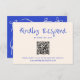 Une simple et élégante calligraphie colorée carte rsvp de mariage rétro. Cela a comme vous voyez un vintage moderne et élégant arrière - plan laiteux crémeux avec un script bleu. Avec un code QR personnalisable afin que vos invitations puissent RSVP en ligne sur votre site Web. Et des lunettes à vin et à l'armature vintage crème dessinée à la main sur le dos. Minimaliste et chic avec lettrage manuscrit. Il est entièrement modifiable en cliquant sur le bouton Personnaliser.