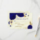 Magnifique carte rsvp botanique personnalisable belle fleurs bleu royal avec feuilles or contre élégante arrière - plan en marbre Les détails de la parties scintillant sont simulés