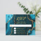 Faites une première impression audacieuse et élégante avec cette carte de réponse en marbre d'agate bleu sarcelle et or, mettant en vedette de riches tons de bijoux, des textures de pierre organique et des accents dorés scintillants parfaits pour les célébrations d'automne et d'hiver. Les teintes profondes de l'océan associées à des détails en or métallisé créent un look dramatique et raffiné idéal pour une réponse de mariage, une réponse d'anniversaire ou une réponse de Sweet Sixteen avec une esthétique formelle, moderne ou glamour. Inspiré par les motifs naturels d'agate et de géode, ce design luxueux se coordonne parfaitement avec les événements saisonniers haut de gamme et est entièrement personnalisable pour correspondre à vos détails, ajoutant une sophistication intemporelle aux célébrations d'automne et d'hiver.