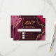 Faites une première impression audacieuse et élégante avec cette carte de réponse en marbre d'agate rouge burgundy et or, mettant en vedette des tons de bijoux riches, des textures de pierre organique et des accents dorés scintillants parfaits pour les célébrations d'automne et d'hiver. Les teintes riches de vin et de cramoisi associées à des détails en or métallisé créent un look dramatique et raffiné idéal pour une réponse de mariage, une réponse d'anniversaire ou une réponse de Sweet Sixteen avec une esthétique formelle, moderne ou glamour. Inspiré par les motifs naturels d'agate et de géode, ce design luxueux se coordonne parfaitement avec les événements saisonniers haut de gamme et est entièrement personnalisable pour correspondre à vos détails, ajoutant une sophistication intemporelle aux célébrations d'automne et d'hiver.