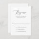 Carte RSVP classique mariage blanc avec "Réponse" dans un script délicat. Une simple carte RSVP sans aucune carte graphique, en fait un design élégant et intemporel, parfait pour une suite de faire-part de mariage formelle.