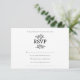 Initiales simples en monogramme de couple mariage avec des détails de feuille d'art de ligne botanique pour une belle et unique carte de réponse minimaliste de mariage noir et blanc RSVP. Modifiez le texte à personnaliser.