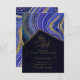 Vous obtenez à la fois le glamour et l'impact élevé avec cet ensemble de mariage de coordination qui comprend des motifs d'agate abstraits, texturés avec des faux cristaux et des reflets dans un film d'or scintillant. Des combinaisons de couleurs frappantes, comme cette suite avec sa palette ciel de nuit du bleu profond de minuit au violet doux, créent l'arrière - plan pour les pièces de cet ensemble coordonné. Cette carte RSVP de mariage contient tous les éléments ci-dessus ainsi que de la calligraphie élégante sur un étiquette incliné et semi-transparent pour tenir vos sélections de menu. Un modèle est fourni pour ajouter facilement votre réponse par date, sélections de menu, initiales et date du mariage. Affichez le lien de collection sur cette page pour voir tous les éléments correspondants dans cette belle conception ou recherchez ID827 pour voir des choix de couleurs supplémentaires.