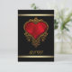 Coeur gothique satiné rouge riche avec garniture or orné élégant spectaculaire noir et or faire-part de mariage de goth RSVP réponse carte. Vous pouvez modifier le style de police, la couleur de police et la couleur de l'arrière - plan latéral arrière.