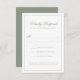 La carte RSVP de mariage Monogramme de Sage Formel Classique dégage une élégance intemporelle avec son script vert sage sophistiqué et ses détails monogrammes raffinés. Complétant parfaitement un mariage classique ou d'inspiration nature, cette carte RSVP assure un processus de réponse sans faille tout en ajoutant une touche gracieuse à votre suite mariage. Idéal pour les mariages du printemps, de l'été et du jardin !