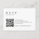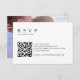 Carte RSVP de Mariage de code QR moderne avec une disposition simple et minimaliste avec votre code QR et les instructions à côté dans l'alignement gauche. Le dos a votre photo préférée. Tout le texte est en noir sur un arrière - plan blanc et peut être modifié à n'importe quelle couleur en cliquant sur le bouton "personnaliser".