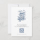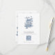 Toile Bleue Rustique De Jouy QR Code Mariage RSVP. Un design floral bleu toile de jouy est au-dessus du texte et votre code QR à l'avant et plus grand à l'arrière.