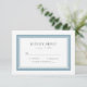 Cette carte de mariage classique moderne RSVP comporte une couleur de bordure modifiable; pour changer la couleur de la bordure et de l'arrière - plan arrière du bleu poussiéreux à la couleur de votre choix, cliquez sur le bouton personnaliser et modifiez simplement la couleur de l'arrière - plan avant et arrière. Consultez d'autres articles mariages correspondants ici https://www.zazzle.com/collections/editable_color_classic_round_monogram_wedding_1-119000260232212352?rf=238364477188679314&tc=rc . Personnalisez-le en remplaçant le texte de l'espace réservé. Pour plus d'options comme changer la police, sa taille et l'espacement entre les lettres cliquez sur le bouton "Personnaliser". *Veuillez noter que le filigrane Zazzle qui apparaît dans l'aperçu du zoom n'apparaîtra PAS sur le produit imprimé final. © Bois de rose et agrumes