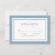 Cette carte de mariage classique moderne RSVP comporte une couleur modifiable; pour changer la couleur de la bordure et de l'arrière - plan arrière du bleu poussiéreux à la couleur de votre choix, cliquez sur le bouton personnaliser et changez simplement la couleur de l'arrière - plan avant et arrière. Personnalisez-le en remplaçant le texte de l'espace réservé. Pour plus d'options comme changer la police, sa taille et l'espacement entre les lettres cliquez sur le bouton "Personnaliser". *Veuillez noter que le filigrane Zazzle qui apparaît dans l'aperçu du zoom n'apparaîtra PAS sur le produit imprimé final. © Bois de rose et agrumes