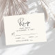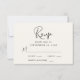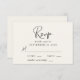 Carte RSVP de mariage crème légère chic avec "Rsvp" dans un script moderne, une typographie simple et élégante et vos noms et date réunis par un coeur sur le dos.