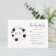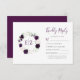 Ce design mariage présente les initiales monogrammes de la mariée et du marié en violet encadrées par une couronne d'aquarelle de fleurs printanières pourpres et rousses et de feuillage vert sur le côté gauche. Customisez le texte de droite, avec place pour une option RSVP en ligne avec l'URL du site.